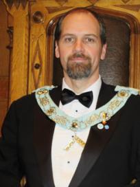 The original Bible for use on the Altar was presented in that year by J. Alex Robinson. The three silver gavels were given to the Lodge by Ancient Landmarks No. 441. Buffalo, N.Y. The handles of these gavels were carved from a piece of mahongy actually removed from their furniture for that particular purpose. The Wands were given to the Lodge by J. Howard Percy and the Charts by J.P.l MacKay. The engraved columns at the Warden's Chairs were the gift of Ernest Ackerman, the Tray of Benevolence from Grant McEwen and the original baton for the Director of Ceremonies from Wilfred Houser.